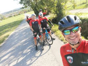 Vožnja do Predmeje je potekala tako rekoč v idealnem vremenu za kolesarske podvige. Najprej nas je pot vodila do Ajdovščine, potem pa smo začeli vzpon proti zloglasni Predmeji. Po začetnem smehu in navdušenju nad vremenom nas je kaj hitro realnost vzpona utišala in trpljenje se je začelo. Kot vedno po začetnem trpljenju in negodovanju predvsem dveh z novimi kolesi je bilo vse poplačano, ko smo prišli na vrh in uživali ob razgledu. Po obveznem slikanju in objavljanju slik na socialnih medijih smo pričeli spust proti Ajdovščini. Po vmesnem postanku v Črničah, kjer smo uživali v dobrotah domačega proizvajalca suhomesnatih izdelkov, smo ob 14h srečno prišli do Osmice pri Lahu, kjer smo se zopet združili z našimi pohodniki, ki so bili tako kot mi malo utrujeni ampak veselih obrazov.