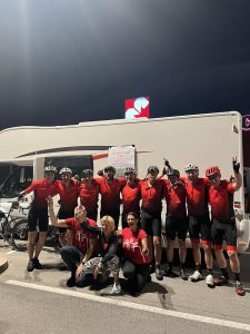 Deset kolesarjev – Mito Kot, Bojan Peršič, Slaviša Cvijić, Krešimir Ležaić, Robert Male, Andrej Jereb, Tomaž Šau, Milan Zupanič, Metod Pogačnik in Sebastjan Retelj – ter spremljevalna ekipa v kampu – Aleš Pregel, Urška Majerič in Alenka Klemenčič – v petek ob 22.40 smo krenili s Ptuja, svojo pot pa zaključili v soboto ob 21.30 v Kopru. 23-urna vožnja je vključevala kratke petminutne postanke ter zajtrk in kosilo in bilo je neverjetno. Ekipa je dihala kot eden, a na naših obrazih je bilo videti odločenost, da dosežemo, kar smo si zadali. Uspelo nam je!Pred štartom smo se zbrali na večerji in se založili z ogljikovimi hidrati. Tudi kombi, ki nas je spremljal na poti, je bil dobro založen: 9 kg banan, 50 kajzeric, Nutella, med, kremni namazi, velike količine Coca-Cole, vode in kave … Vsak kolesar pa je imel svojo torbo in razne dodatke, ki so nujni za dolgotrajna športna prizadevanja in napore.